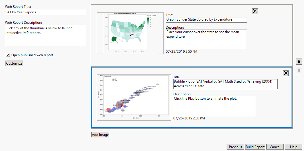 15. (Optional, multiple reports only) To add images, click Add Image. You can also enter a title and description.