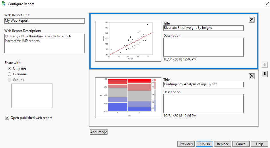 – To share your report with everyone on JMP Public or JMP Live, choose Everyone.