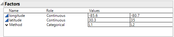 3. Rename the factors longitude and latitude. Enter the min and max values, as follows: