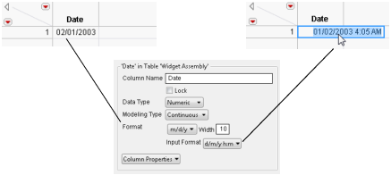Suppose that you are entering dates into a column using the d/m/y h:m format, but you want to see the dates in the m/d/y format. Input Format defines the input format, and Format defines the display format. For example,