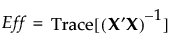 Relative efficiencies for each of D-, G-, A-, and I-efficiency are shown in the Design Diagnostics report. These are obtained by computing each design’s efficiency value and then taking the appropriate ratio. The descriptions of the relative efficiency measures are given in Relative Efficiency Measures.