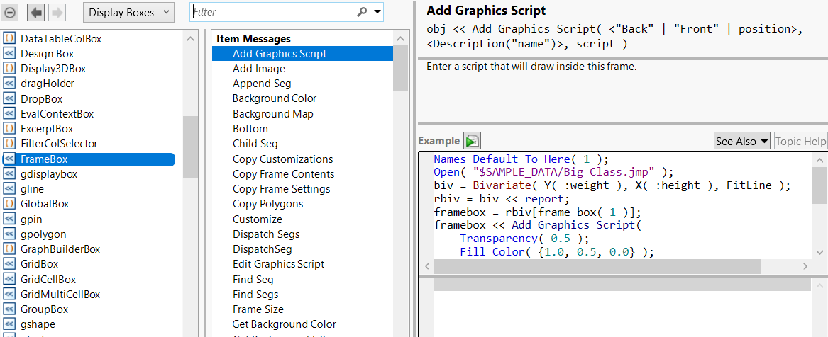 Scripting Guide > Display Trees > Navigate JMP Reports > Display Box Object References