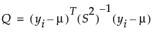 In this equation, yi = the response for the ith observation, μ = the current estimate of the mean vector, S2 = current estimate of the covariance matrix, and T = the transpose matrix operation. The final step is a bias reduction of the variance matrix.