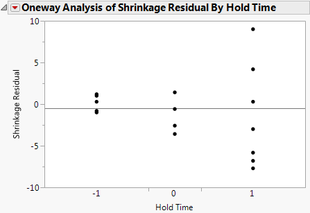 In this plot it is easy to see the variance go up as the Hold Time increases. This is done by treating Hold Time as a nominal factor.