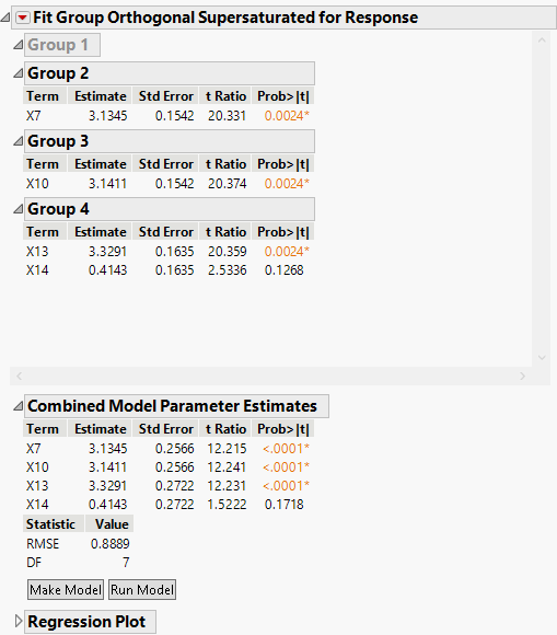 Figure 26.3 Fit Group Orthogonal Supersaturated Results