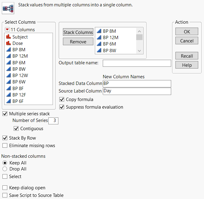 7. Rename the Stacked Data Column from Data to BP (for blood pressure).