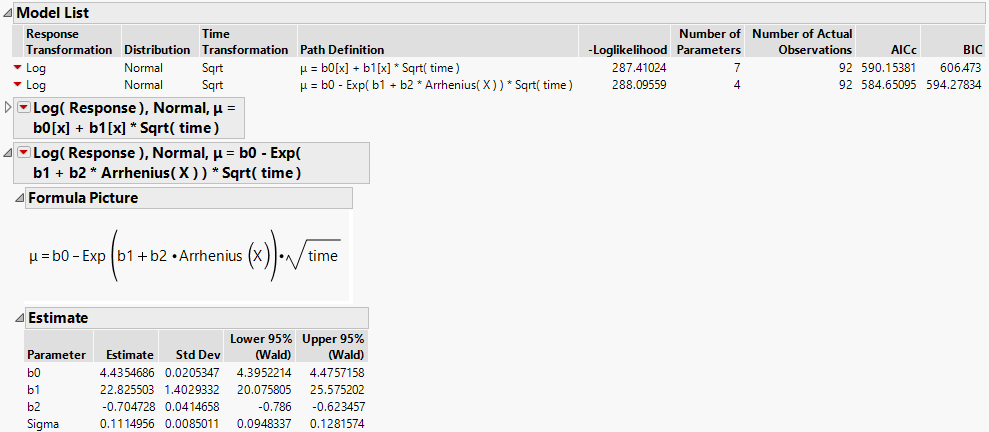 Figure 8.6 Report Including Second Model with Arrhenius Transformation