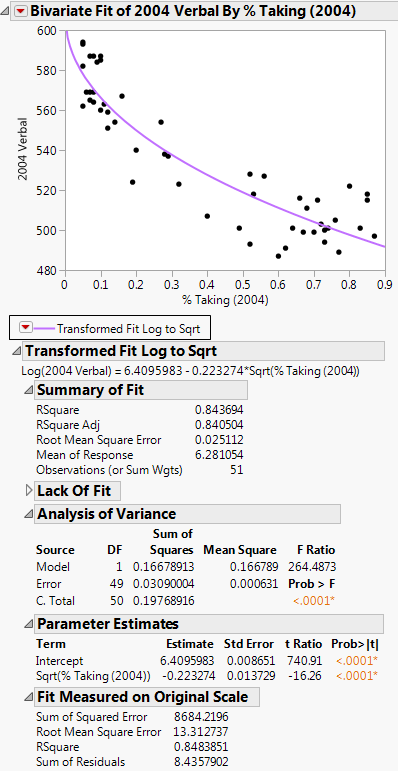 1. Select Help > Sample Data Library and open SAT.jmp.