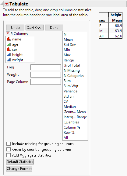 6. Click All and drag it on top of sex. Or, you can simply select the Add Aggregate Statistics check box.