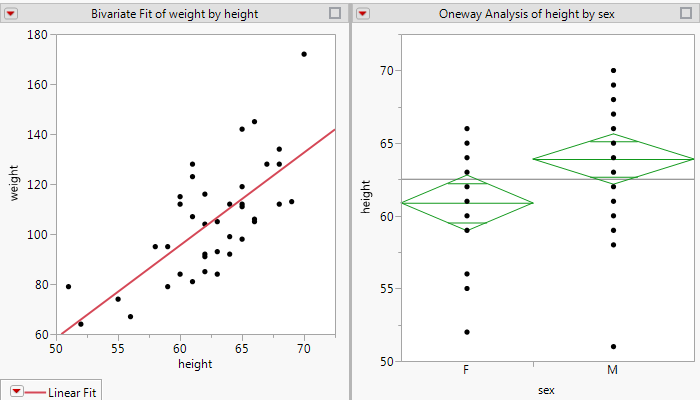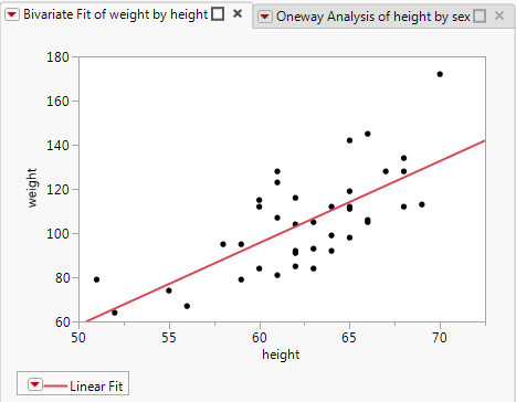 Title( "Bivariate Fit of weight by height" ),