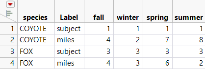 1. Select Help > Sample Data Library and open Animals Subset.jmp.