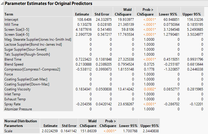 If you prefer not to work through the steps in this section, click the green triangle next to the Generalized Regression Reduced Model script in the Tablet Production.jmp data table to obtain the reduced model.