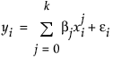 A polynomial of degree 2 is a parabola; a polynomial of degree 3 is a cubic curve. For degree k, the model for the ith observation is as follows:
