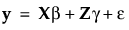 Here y is the nx1 vector of observations, β is a vector of fixed-effect parameters, γ is a vector of random-effect parameters, and ε is a vector of errors.