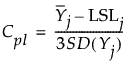 Suppose that the process has both a lower and an upper specification limit but no target. Then the formulas given in Goal Plot are used, replacing Tj with the midpoint of the two specification limits.