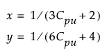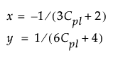Note: If either Cpu or Cpl is less than -0.6, then it is set to -0.6 in the formulas above. At the value -2/3, the denominator for x assumes the value 0. Bounding the capability values at -0.6 prevents the denominator from assuming the value 0 or switching signs.