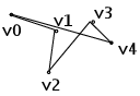 Draws a line segment from v0 to v1, then from v1 to v2, and so on. Therefore, n vertices specify n–1 line segments. Nothing is drawn unless there is more than one vertex. There are no restrictions on the vertices describing a line strip; the lines can intersect arbitrarily.