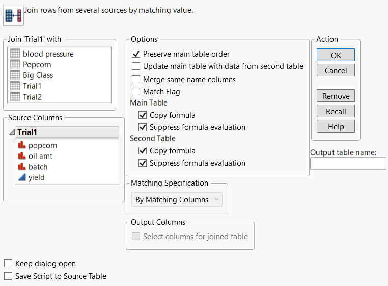 If you are matching by column, Match Flag is selected when you select Merge same name columns. The new joined table contains a nominal column named Match Flag: