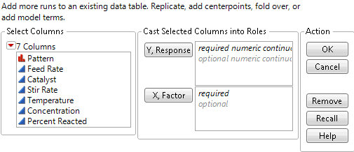 Launch the Augment Design platform by selecting DOE > Augment Design from the data table that contains the design that you want to augment.