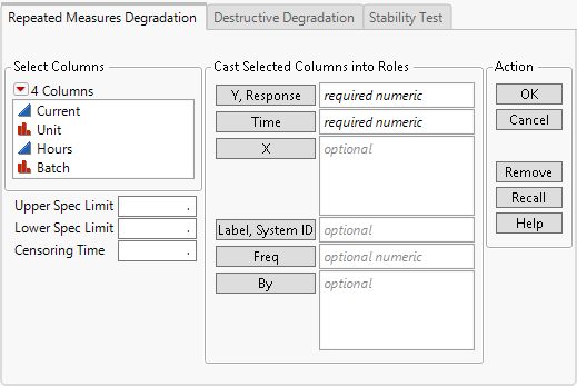 Note: The Destructive Degradation platform provides a flexible collection of predefined models for destructive testing. See Destructive Degradation.