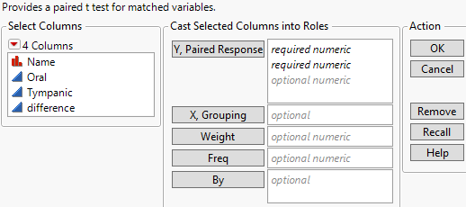 Launch the Matched Pairs platform by selecting Analyze > Specialized Modeling > Matched Pairs.