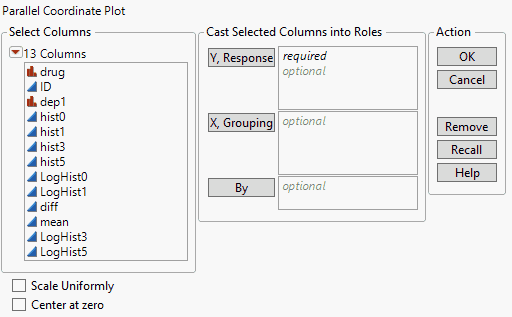 Launch the Parallel Plot platform by selecting Graph > Parallel Plot.