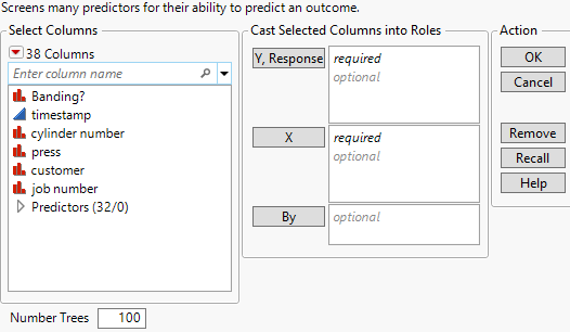 Launch the Predictor Screening platform by selecting Analyze > Screening > Predictor Screening.