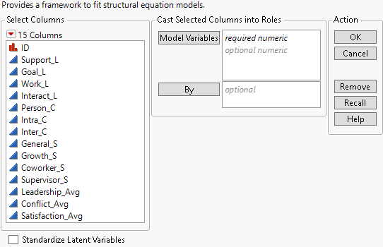 Multivariate Methods > Structural Equation Models > Launch the Structural Equation Models Platform