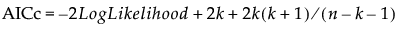 where k is the number of estimated parameters in the model and n is the number of observations used in the model. This value can be used to compare various models for the same data set to determine the best-fitting model. The model having the smallest value, as discussed in Akaike (1974), is usually the preferred model.
