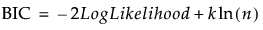 where k is the number of estimated parameters in the model and n is the number of observations used in the model. When comparing the BIC values for two models, the model with the smaller BIC value is considered better.