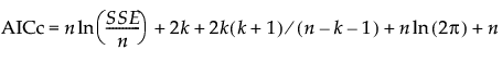 where k is the number of estimated parameters in the model, n is the number of observations used in the model, and SSE is the error sum of squares in the model.