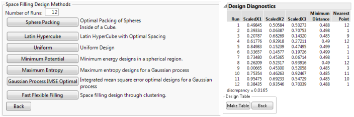 Figure 21.18 Space-Filling Methods and Design Diagnostics for Minimum Potential Design