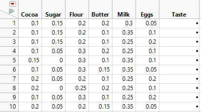 The goal of your experiment is to optimize a Taste rating. Taste is rated on a scale of 1 to 10, with 10 representing the best taste.