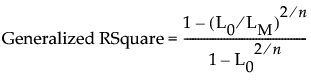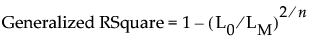 (Not available for Quantile Regression.) An extension of the RSquare measure that can be applied to general regression models. Generalized RSquare compares the likelihood of the fitted model (LM) to the likelihood of the intercept-only (constant) model (L0). It is scaled to have a maximum of 1. For distributions other than Binomial, the Generalized RSquare is defined as follows: