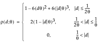 See Santer (2003). The theta parameter used in the Cubic correlation structure is the reciprocal of the parameter often used in the literature. The reciprocal is used so that when theta has no effect on the model, then rho has a value of zero, rather than infinity.