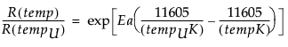 where RU is the reaction rate at use temperature tempU, RU x AF(temp) is the reaction rate at a general temperature temp, and for temp > tempU, AF(temp) > 1