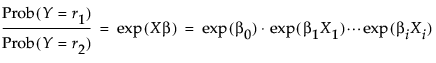 Note that exp(βi(Xi + 1)) = exp(βiXi) exp(βi). This shows that if Xi changes by a unit amount, the odds is multiplied by exp(βi), which we label the unit odds ratio. As Xi changes over its whole range, the odds are multiplied by exp((Xhigh - Xlow)βi), which we label the range odds ratio. For binary responses, the log odds ratio for flipped response levels involves only changing the sign of the parameter. Therefore, you might want the reciprocal of the reported value to focus on the last response level instead of the first.