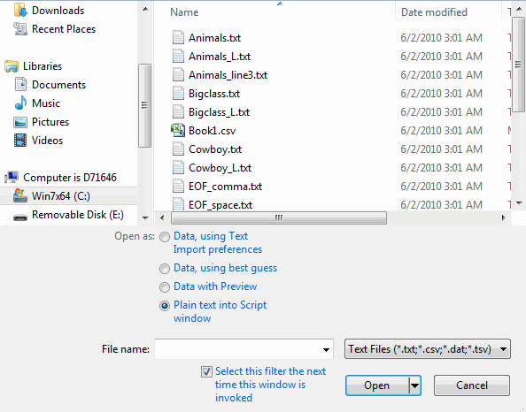 You can open a text file in a Script window, where you edit the text. Then you can import the text as a data table. This feature is helpful when you want to reformat the text before importing it as a data table. For example, you might need to insert the correct delimiters or modify the text.