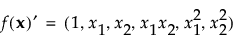 The moments matrix does not depend on the design and can be computed in advance. The row vector f (x) consists of a 1 followed by the effects corresponding to the assumed model. For example, for a full quadratic model in two continuous factors, f (x) is defined as follows: