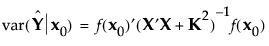 The prediction variance relative to the unknown error variance at a point x0 in the design space can be calculated as follows: