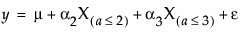 noting that μ is the expected response at A = 1, μ + α2 is the expected response at A = 2, and μ + α2 + α3 is the expected response at A = 3. Thus, α2 estimates the effect moving from A = 1 to A = 2 and α3 estimates the effect moving from A = 2 to A = 3.