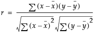 The Pearson product-moment correlation coefficient measures the strength of the linear relationship between two variables. For response variables X and Y, it is denoted as r and computed as follows: