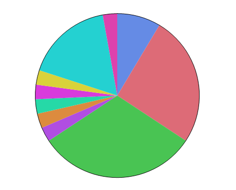 Traditional pie chart with each slice sized by the Summary Statistic.