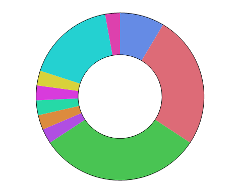 The Pie element plots summary statistics for groups of observations, representing their values as the size of the slices or rings on a pie chart.