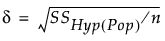 When observations are available, the estimated effect size is calculated by substituting the calculated sum of squares for the hypothesis into the formula for δ.