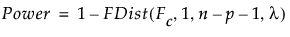 To compute the power of the test, first solve for the α-level critical value Fc: