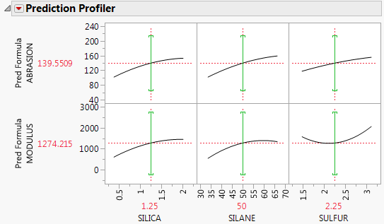 Figure 3.37 Green Propagation of Errors Bars in the Prediction Profiler