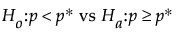 where p is the probability of survival time at t* for the new product and p* is the standard probability of survival at time t*.