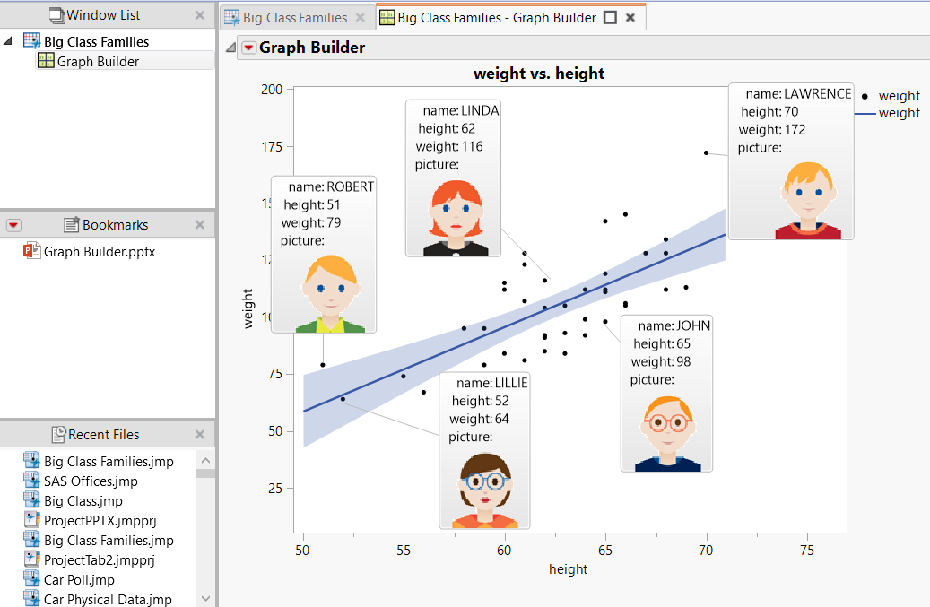 2. Select File > Open, navigate to the JMP Samples/Data folder, and open Big Class Families.jmp.
