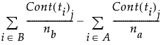For the score plot group comparisons, the relative score contribution for variable j is the difference between the average contribution in group B and the average contribution in group A: